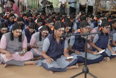மருதமலையில் கந்த சஷ்டி பாடிய மாணவர்கள்