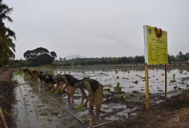 வேளாண் பல்கலையில் மாணவர்கள் நெல் நடவு