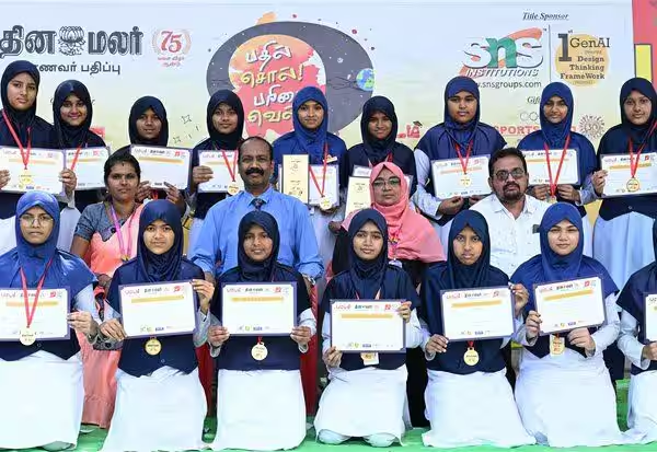 கோவை: ‘தினமலர்’ நாளிதழின் மாணவர் பதிப்பான ‘பட்டம்’ மற்றும் எஸ்.என்.எஸ் கல்விக் குழுமம் இணைந்து நடத்தும், ‘பதில் சொல் – பரிசை வெல்’ வினாடி-வினா போட்டியில், கரும்புக்கடை ஜீவன்ஸ் பள்ளி மாணவிகள் வெற்றி பெற்று, அரையிறுதி சுற்றுக்குத் தகுதி பெற்றுள்ளனர்.மாணவர்களின் கற்றல் ஆர்வத்தையும் நுண்ணறிவு திறன்களையும் ஊக்குவித்து, படிப்பின் மீதான ஆர்வத்தை விரிவுபடுத்தும் வகையில், வினாடி-வினா போட்டிகள் ‘தினமலர்’ நாளிதழ் சார்பில் நடத்தப்பட்டு வருகின்றன.